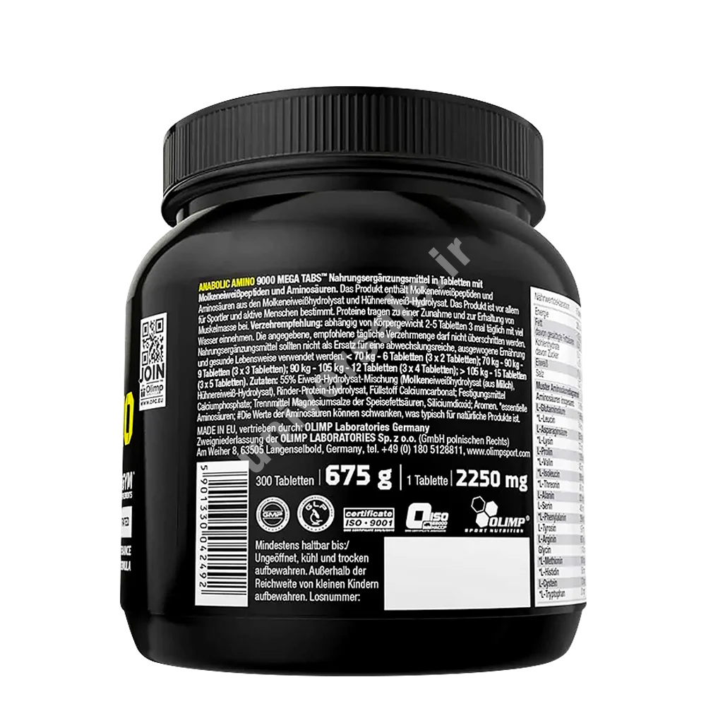 قرص آنابولیک آمینو 9000 الیمپ (Anabolic Amino 9000 Olimp) یکی از بهترین مکملهای آمینو اسیدی برای ورزشکاران حرفهای و بدنسازان است که با هدف افزایش رشد عضلات، تسریع فرآیند ریکاوری و تقویت عملکرد ورزشی تولید شده است. این مکمل حاوی پروفایل کامل آمینو اسیدهای ضروری و غیرضروری است که از پروتئینهای هیدرولیز شده کلاژن و پروتئین وی گرفته شدهاند.