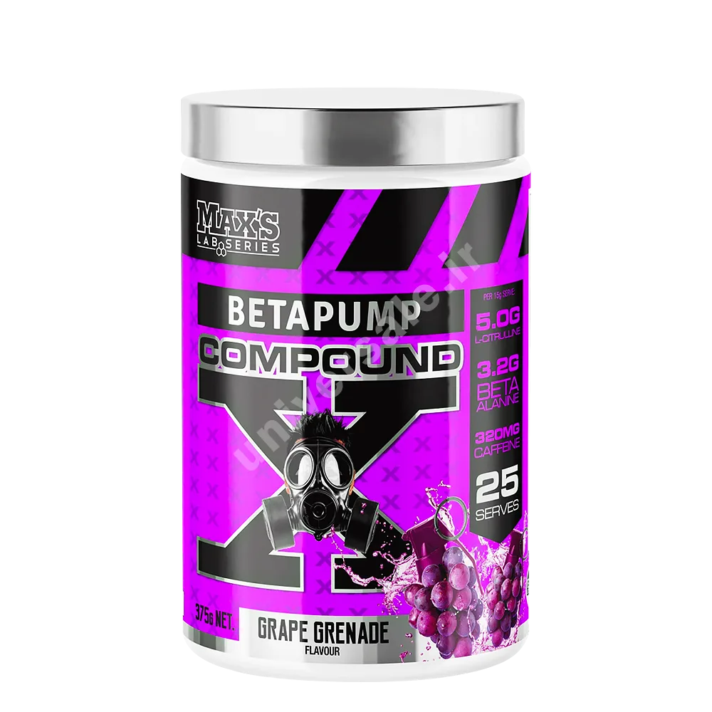 بتا پمپ مکسس 375 گرم MAX’s-BetaPump Compound فوقالعاده قدرتمند است که به دلیل فرمولاسیون پیشرفته، کمک میکند در هر جلسه تمرین حداکثر قدرت، استقامت و انرژی را تجربه کنید. طعم خوشمزه انگور (Grape Grenade)، مصرف آن را لذتبخش کرده و شما را برای تمرینهای سنگین آماده میسازد.اگر به دنبال یک مکمل پیشتمرینی قدرتمند، کاربردیترین و موثرترین انتخاب برای افزایش انرژی، تمرکز و پمپ عضلانی هستید، بتاپمپ مکسس (MAX’s BetaPump Compound X) بهترین گزینه برای شماست.
