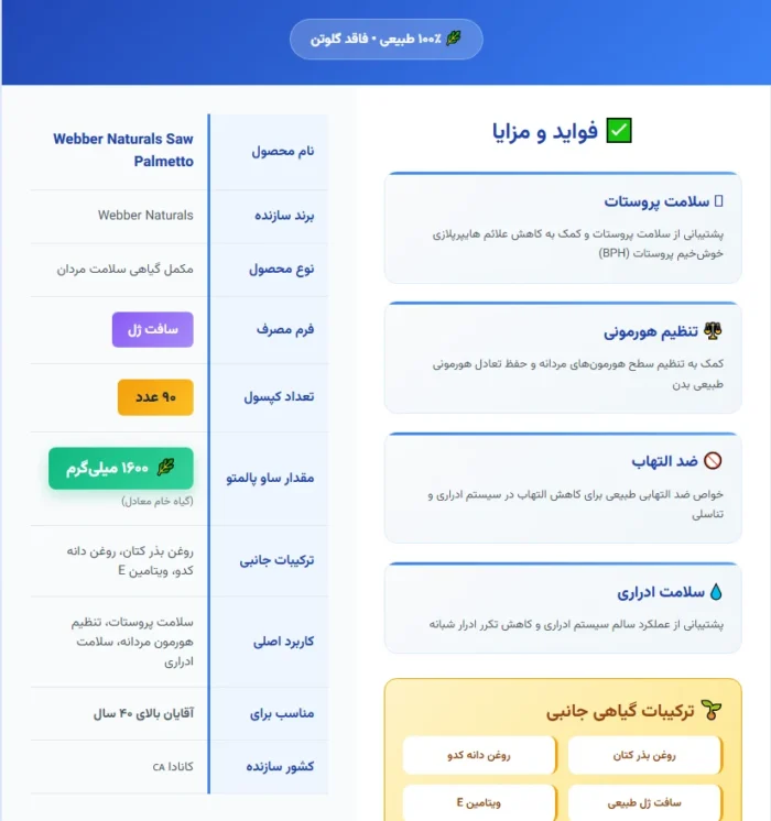 فواید مصرف مکمل ساو پالمتو Webber Naturals اورجینال