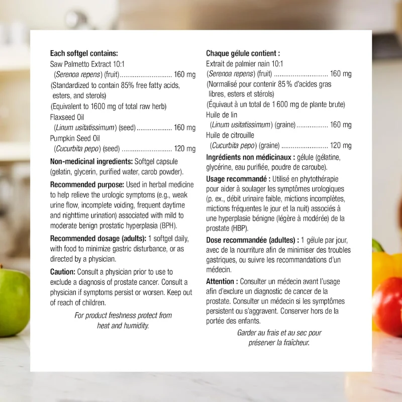 3.کاهش التهاب پروستات ,افزایش کیفیت زندگی آقایان میانسال ,حاوی عصاره استاندارد ساو پالمتو (Saw Palmetto) با ۸۵٪ اسیدهای چرب، استرها و استرولها