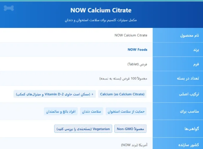 اگر دنبال بهترین نسبت کیفیت-قیمت برای تأمین کلسیم روزانه هستید، NOW Calcium Citrate یک گزینه کاربردیترین و موثر است مخصوصاً برای کسانی که جذب کلسیم برایشان اهمیت دارد. برای اطلاع از قیمت لحظهای و انجام خرید اورجینال، از فروشگاههای معتبر اقدام کنید.