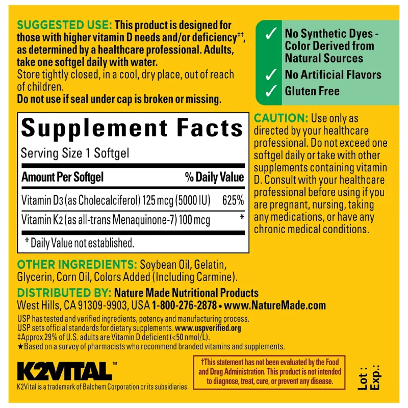 نحوه مصرف مکمل Nature Made Vitamin D3 + K2 Softgels