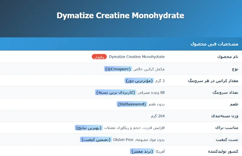 فواید مصرف مکمل کراتین Dymatize اورجینال