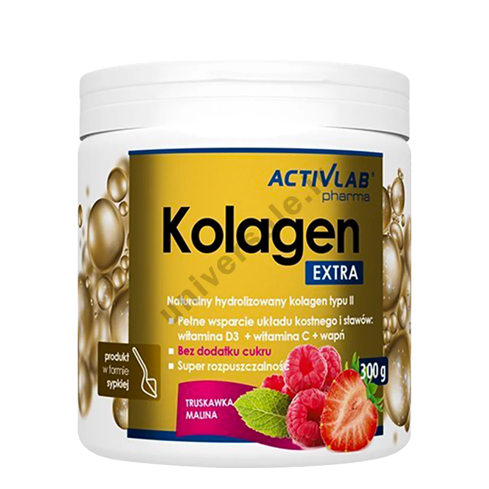 کلاژن اکسترا اکتیولب Activlab Kolagen Extra با ترکیبی کامل و علمی برای بهبود پوست، مو، ناخن، مفاصل و استخوانها طراحی شده است. این محصول حاوی کلاژن هیدرولیزه نوع II بههمراه ویتامین C، ویتامین D3 و کلسیم است که جذب و اثرگذاری آن را چندین برابر میکند.طعم توتفرنگی – تمشک (Strawberry & Raspberry) یکی از محبوبترین طعمها در بین مصرفکنندگان بوده و بدون هیچگونه شکر افزودنی تولید شده است.