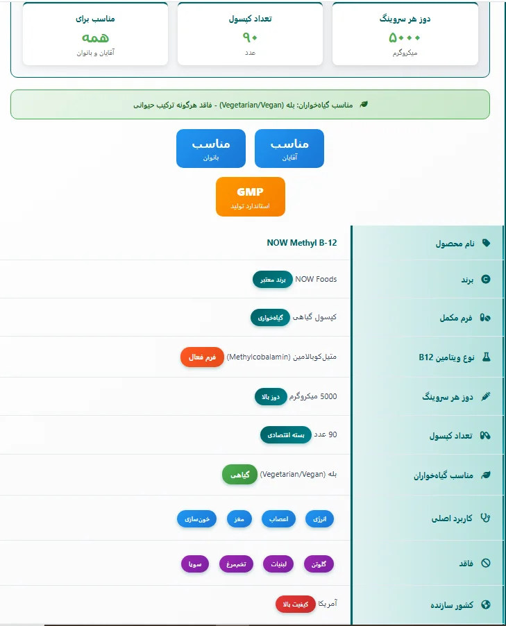 - فرم فعال Methylcobalamin با جذب بسیار بالا