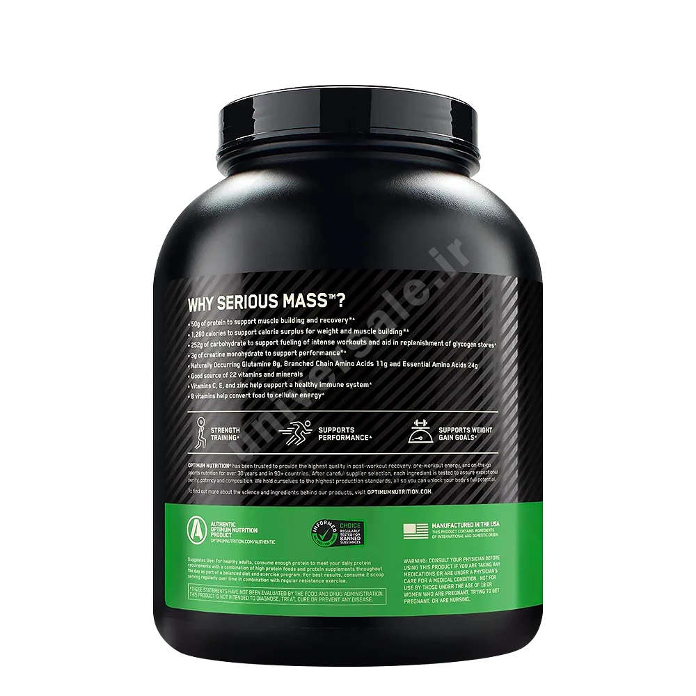 گینر سریوس اوپتیموم ناتریشن Serious Mass Optimum Nutrition یکی از بهترین و کاربردیترین گینرهای افزایش وزن و عضله در دنیاست. این مکمل توسط برند معتبر ON (Optimum Nutrition) تولید شده که در زمینه تغذیه ورزشی شهرت جهانی دارد. سریوس مس با ترکیبی قدرتمند از کالری بالا، پروتئین، و کربوهیدرات پیچیده طراحی شده است.