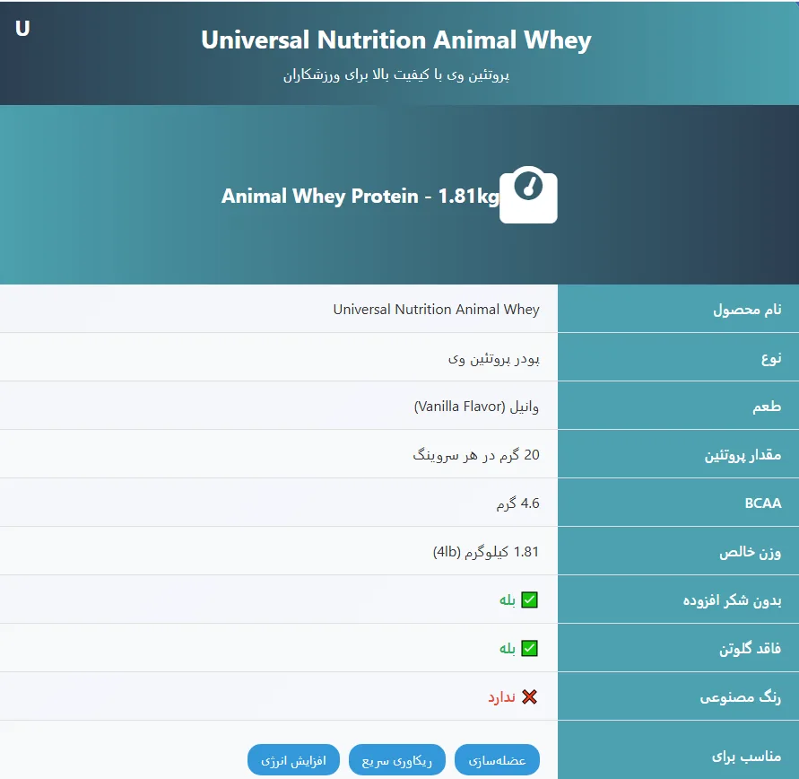انیمال وی یونیورسال واقعاً عاليه! بعد از تمرین حس میکنم عضلاتم سریع ریکاوری میکنن و طعمشم خیلی باحاله، انگار شیرینی خوشمزه میخورم