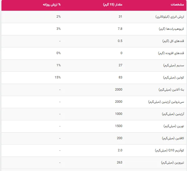 - حاوی ال-سیترولین برای تقویت عملکرد قلبی-عروقی و استقامت