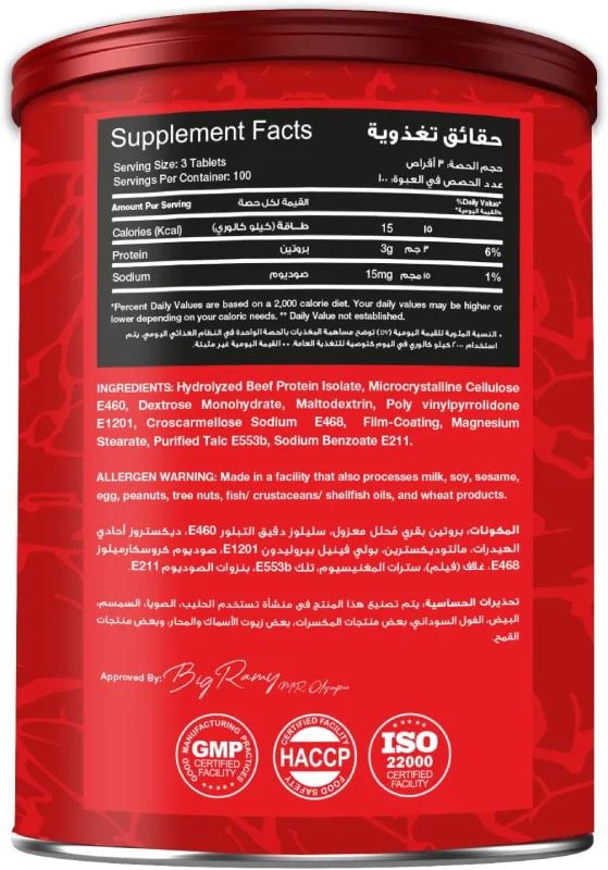 آمینو بیف بیگ رمی Big Ramy Labs Beef Amino بیگ رمی لبز (Red Rex) یکی از بهترین و مؤثرترین آمینوهای حیوانی در بازار جهانی است که از پروتئین خالص گوشت گاو هیدرولیز شده تهیه شده است. این محصول ویژهی ورزشکارانی طراحی شده که به دنبال رشد عضلانی سریع، بازیابی بهتر بعد از تمرین و افزایش حجم خشک و بدون چربی هستند.اگر به دنبال خرید یک مکمل کاربردی و قدرتمند برای عضلهسازی و ترمیم عضلات هستید، آمینو بیف بیگ رمی لبز انتخابی بیرقیب است.