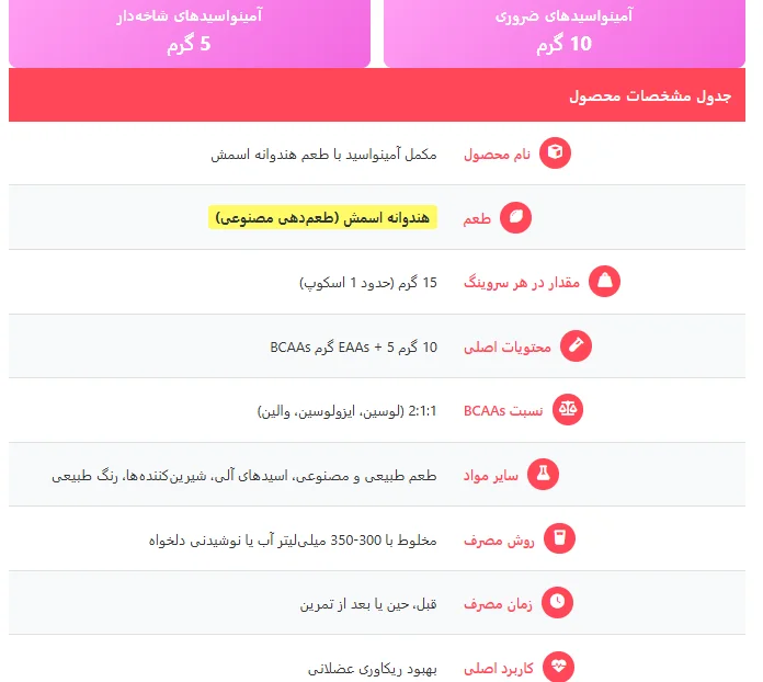 1.ریکاوری فوقسریع و کاهش خستگی عضلانی,فرمول 10 گرمی EAAs باعث ترمیم سریع الیاف عضلانی و کاهش کوفتگی بعد تمرین میشود.
