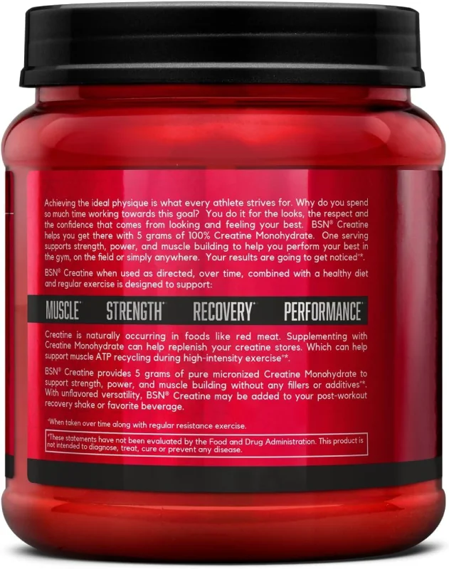 1.افزایش قدرت و توان عضلانی,کراتین BSN با افزایش سطح فسفوکراتین باعث بهبود عملکرد شما در تمرینات قدرتی و سنگین میشود.