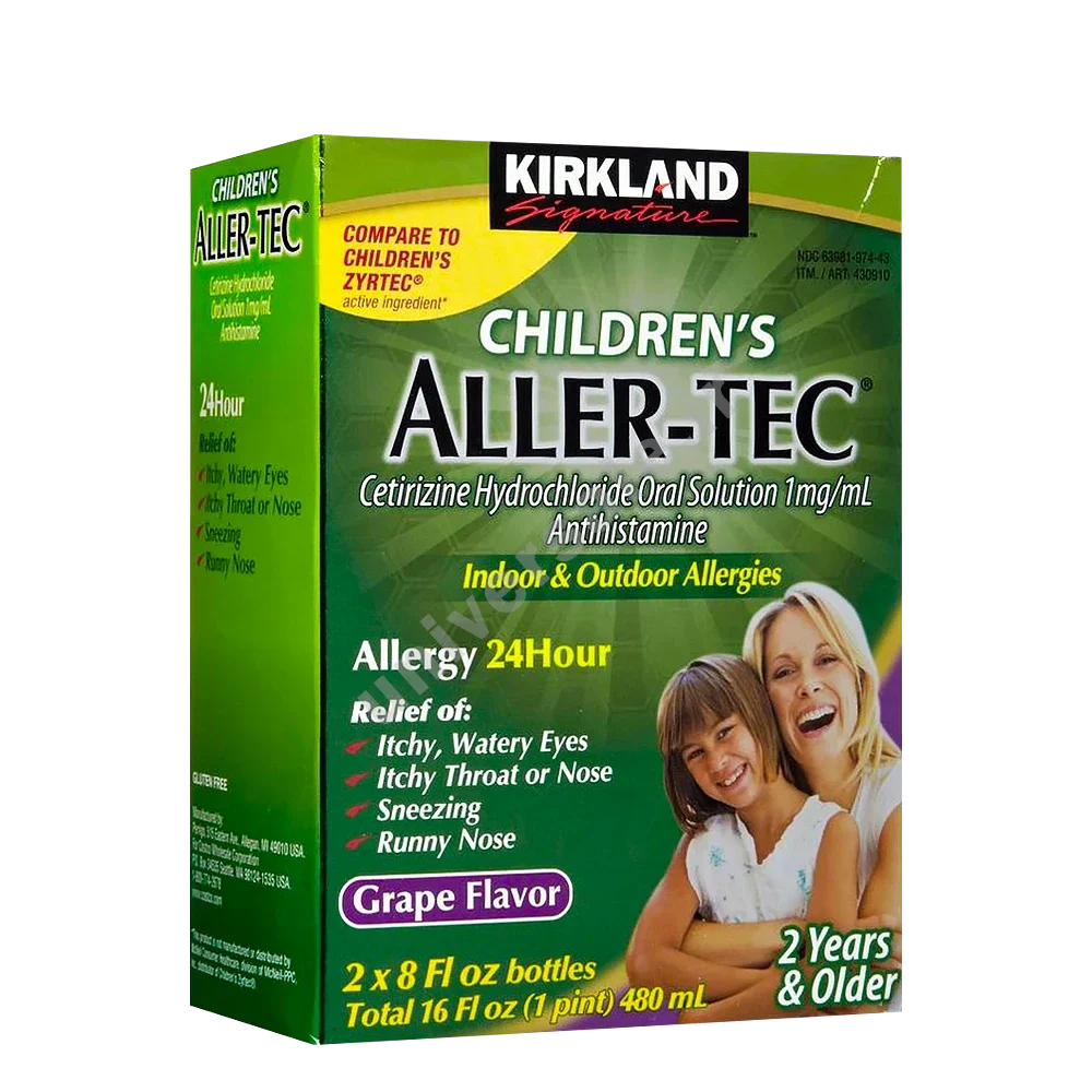 قرص ضد آلرژی آلرتک کرکلند Kirkland Signature Children’s Aller-Tec یکی از بهترین و کاربردیترین مکملهای آنتیهیستامین مخصوص کودکان است که برای رفع سریع و مؤثر علائم آلرژی فصلی یا سالانه مورد استفاده قرار میگیرد. این محصول حاوی Cetirizine Hydrochloride (سیتریزین هیدروکلراید) با دوز 1 میلیگرم در هر میلیلیتر است و مناسب مصرف کودکان ۲ سال به بالا میباشد.