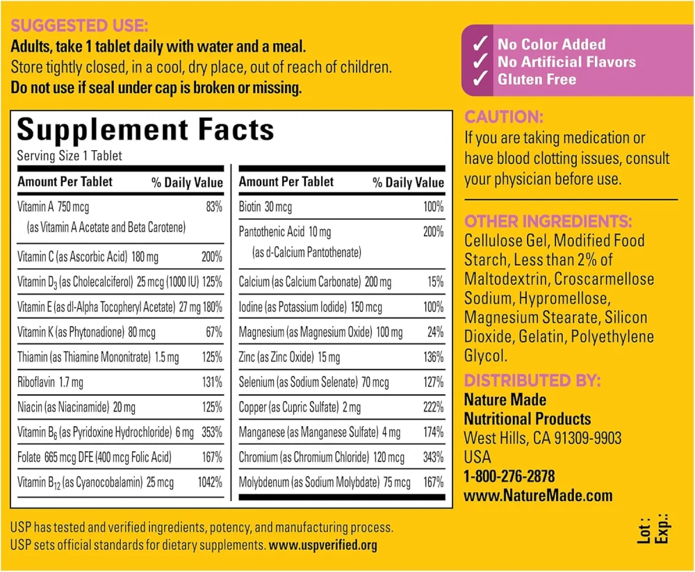 ✅ بدون مواد افزودنی مضر – بسیاری از محصولات Nature Made فاقد گلوتن، رنگهای مصنوعی و نگهدارندههای شیمیایی هستند.