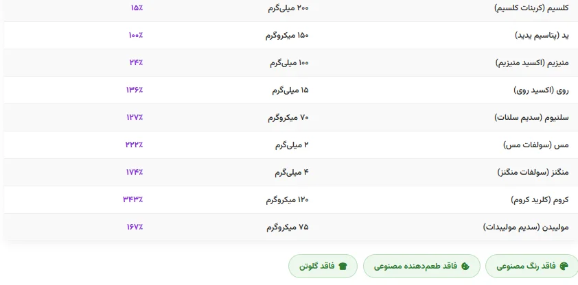 C.فاقد گلوتن، رنگ مصنوعی و مواد مضر ساخت آمریکا با استاندارد USP و به سلامت استخوان و عضلات، سلامت سیستم ایمنی، سلامت تیروئید و متابولیسم انرژی کمک زیادی میکنند.