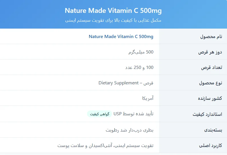 نحوه مصرف مکمل Nature Made Vitamin C 500mg
