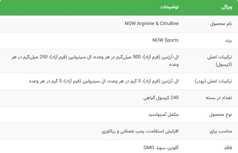 نحوه مصرف مکمل قبل تمرین حرفه ای ناو NOW Arginine and Citrullin