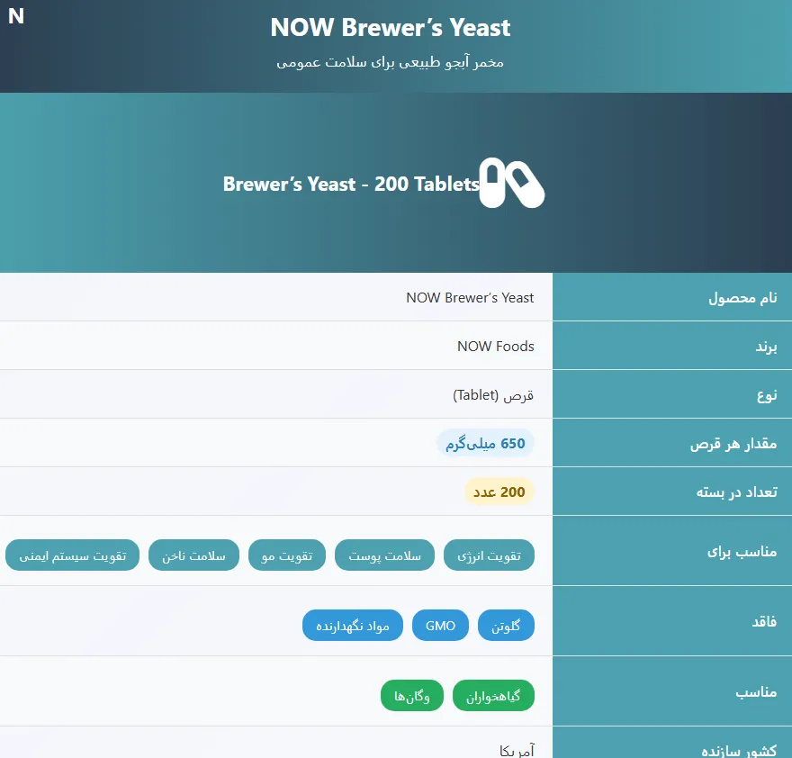 برای افرادی که به دنبال بهترین و موثرترین مکمل طبیعی هستند، انتخاب NOW Brewer’s Yeast یک گزینه هوشمندانه است.شما میتوانید این محصول را با قیمت مناسب از فروشگاه اینترنتی ما universale.ir تهیه کنید.فراموش نکنید که خرید این مکمل، سرمایهگذاری روی سلامت و زیبایی طبیعی شماست.