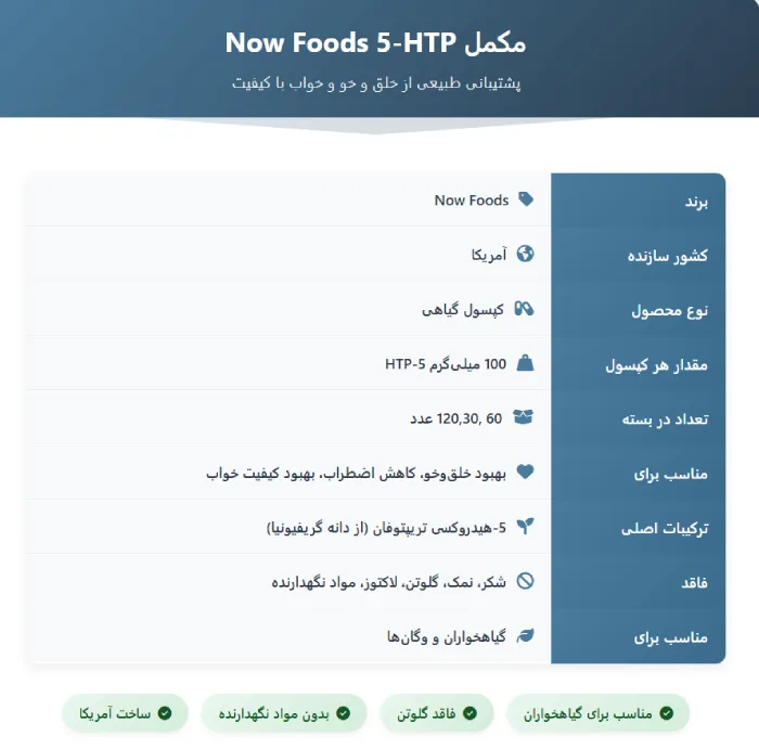 وای، این ۵-HTP از ناو فودز معجزهست از وقتی هر شب میخورم، خوابم مثل بچهها شده، خلقوخویم هم خیلی بهتره، خیلی باحاله
