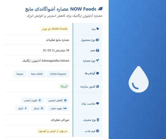 نحوه مصرف عصاره NOW FOODS Ashwagandha Liquid