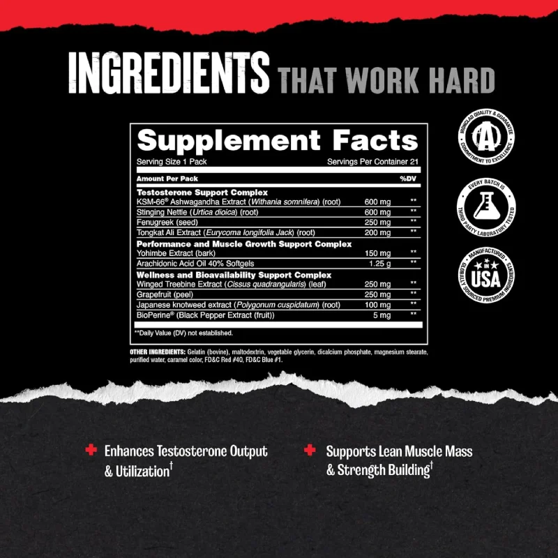 1.فرمولاسیون پیشرفته برای افزایش طبیعی تستوسترون آزاد و کلی و کمک به ساخت عضله خالص (Lean Muscle) بدون احتباس آب