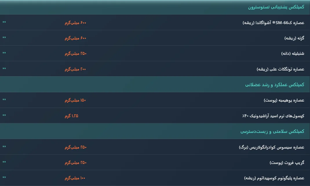 - فرمولاسیون پیشرفته برای افزایش طبیعی تستوسترون آزاد و کلی