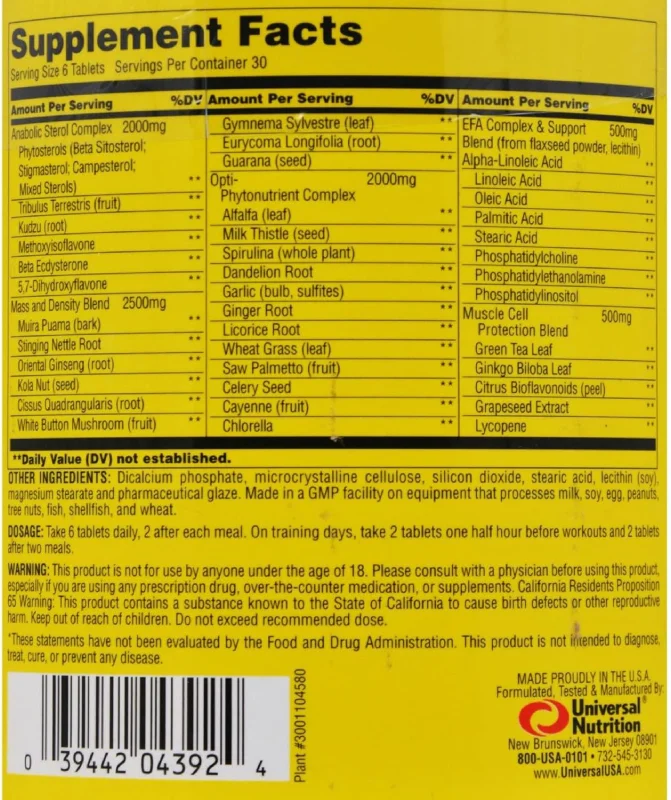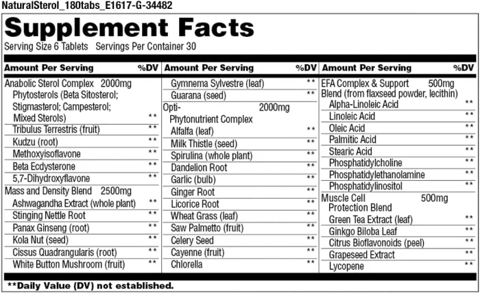 نچرال استرول کمپلکس یونیورسال Universal Natural Sterol Complex یکی از موثرترین مکملهای آنابولیک طبیعی در جهان است که بدون هیچگونه مواد هورمونی، فرایند رشد عضلانی، افزایش قدرت و بهبود عملکرد ورزشی را بهشکل کاملاً طبیعی تقویت میکند.این محصول شامل ترکیبی قدرتمند از گیاهان آنابولیک طبیعی، فیتواسترولها، اسیدهای آمینه ضروری، آنتیاکسیدانها، اسیدهای چرب مفید و متابولیک کمپلکسها است.فرمول حرفهای این مکمل به بدن کمک میکند در همان رژیم غذایی عادی، مواد مغذی بیشتری را به سمت رشد عضله هدایت کند و متابولیسم ساخت عضله را بهطور چشمگیری افزایش دهد.