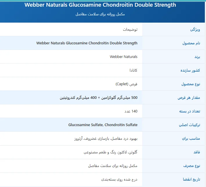 ویژگیهای گلوکزامین کندروئیتین کمپلکس وبر نچرالز کانادایی