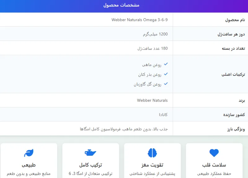 C.محصولی از برند معتبر و شناختهشده کانادایی Webber Naturals ,موثر برای سلامت قلب، مغز، پوست و مفاصل