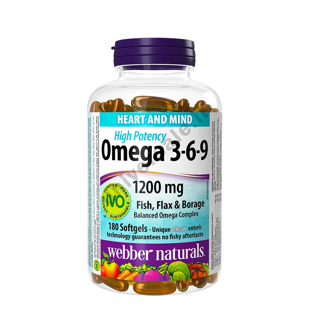 امگا 3 6 9 وبر نچرالز Webber Naturals Omega 3-6-9 دارویی کامل، موثر و کاربردی برای حفظ سلامت قلب، مغز، مفاصل و پوست می باشد. مکمل امگا 3-6-9 وبر نچرالز یکی از بهترین انتخابها برای شماست. این محصول با ترکیبی متعادل از اسیدهای چرب ضروری امگا 3، امگا 6 و امگا 9 تهیه شده و از منابع طبیعی مانند روغن ماهی، روغن کتان و روغن گل گاوزبان (Borage Oil) به دست آمده است.
