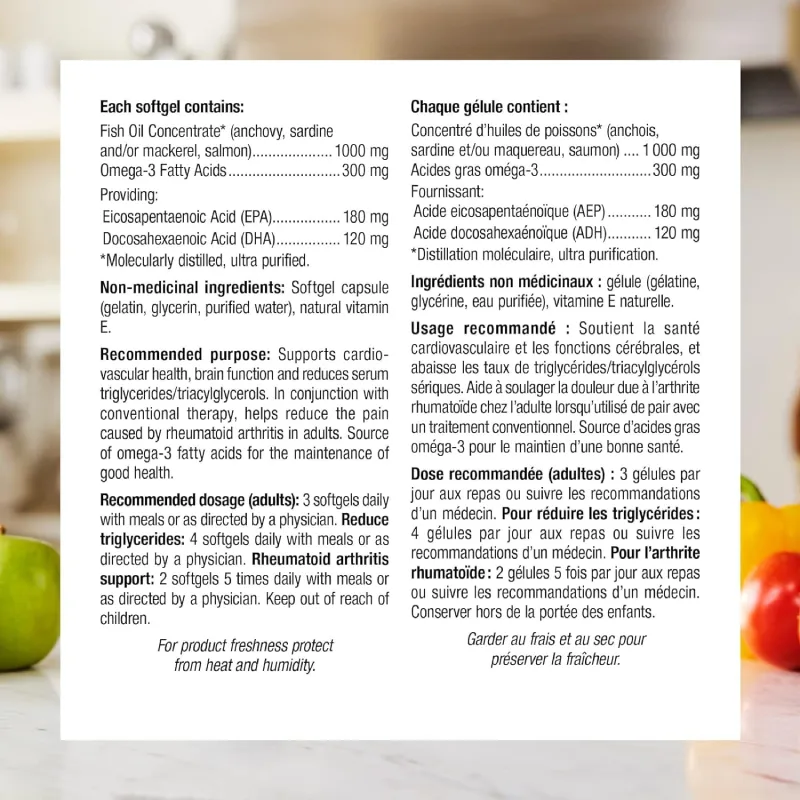 - 1000 mg روغن ماهی بهازای هر سافتژ