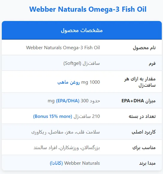 امگا 3 روغن ماهی وبر نچرالز Webber Naturals Omega-3 Fish Oil