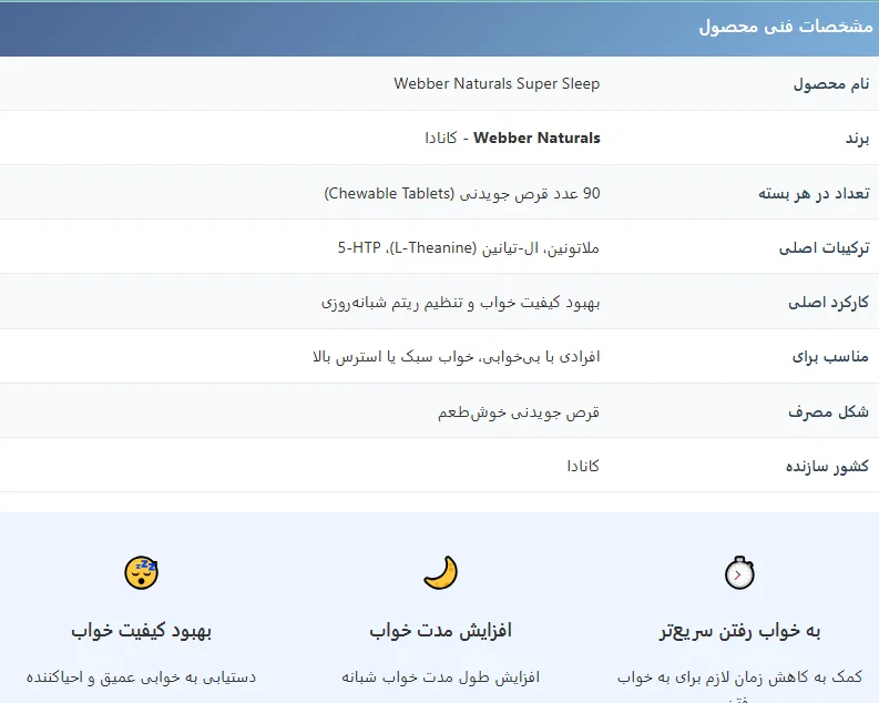 ویژگیهای قرص تنظیم خواب سوپر اسلیپ وبر نچرالز کانادایی