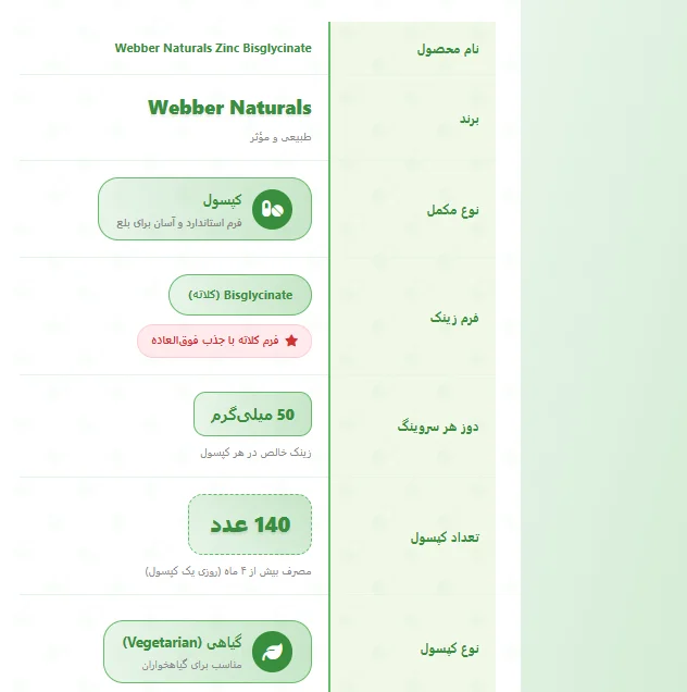 فواید مصرف کپسول زینک بیس گلیسینات Webber Naturals